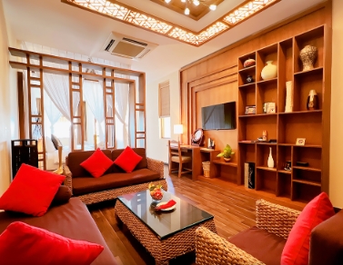 This luxurious bungalow offers spacious interiors featuring 1 bedroom, a living room area fitted with a sofa, and an private bathroom with a spa bathtub. It has a flat screen TV, mini-bar and a private balcony offering views of the sea or garden.